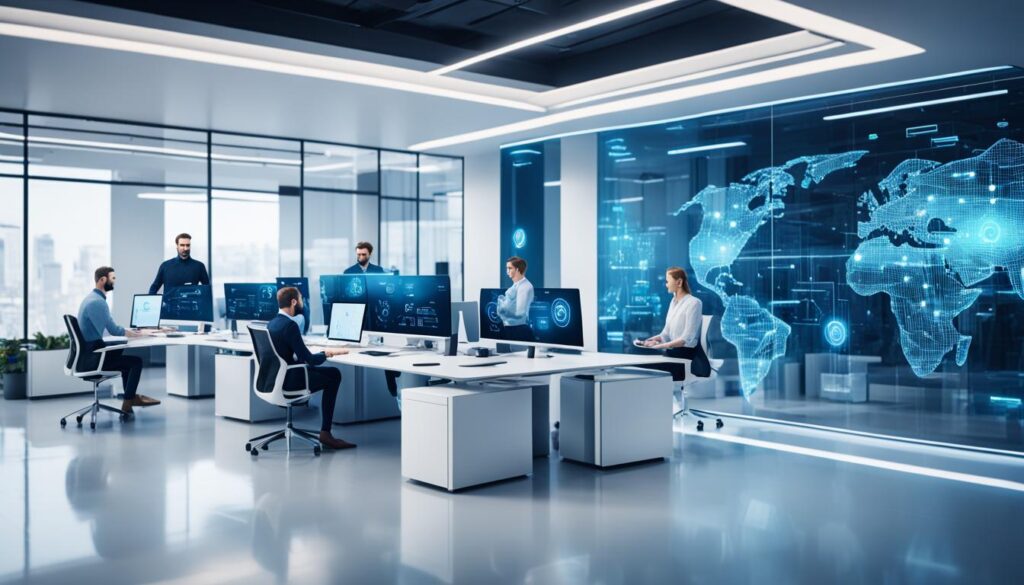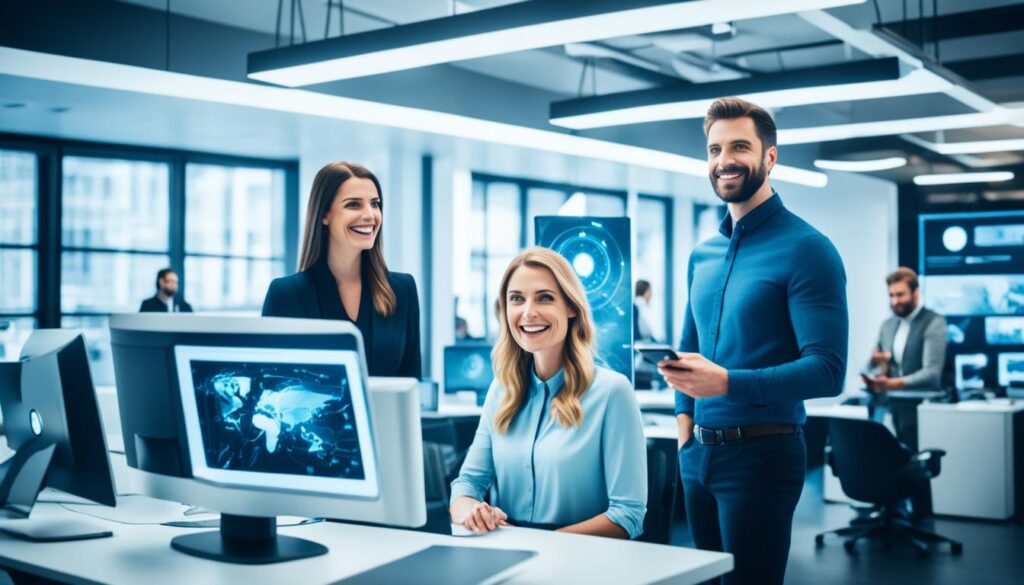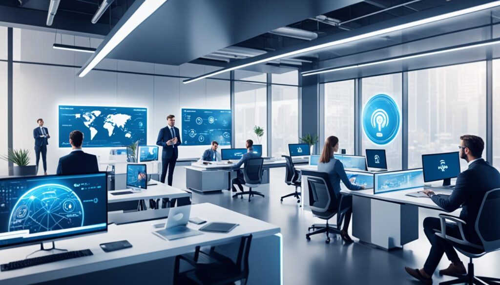 Using advanced automation and smart tech in the workplace is key to staying ahead. It’s a move towards an AI-driven business model. This change is vital for success in today’s competitive market.